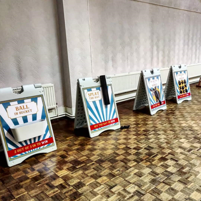 Selection of fair games on A-Boards to hire, perfect for any event.